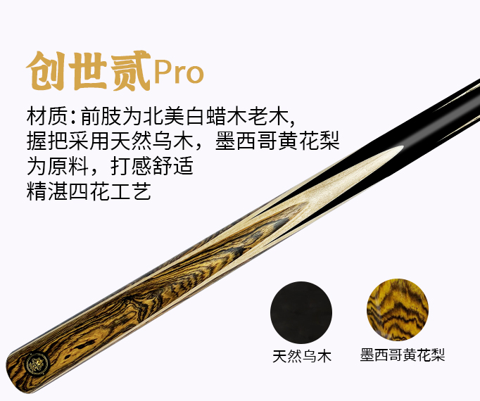 前肢为北美白蜡木老木,握把采用天然乌木,墨西哥黄花梨为原料,打感舒适,精湛四花工艺